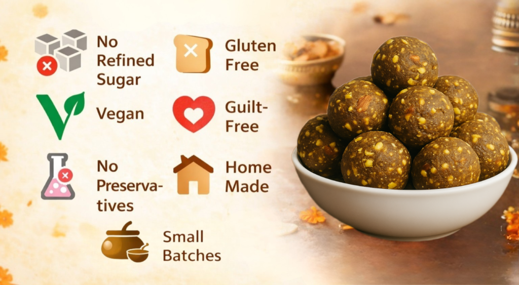✨ “A laddu that feels like maa ke haathon ka pyaar – wholesome, healing, and homemade.”